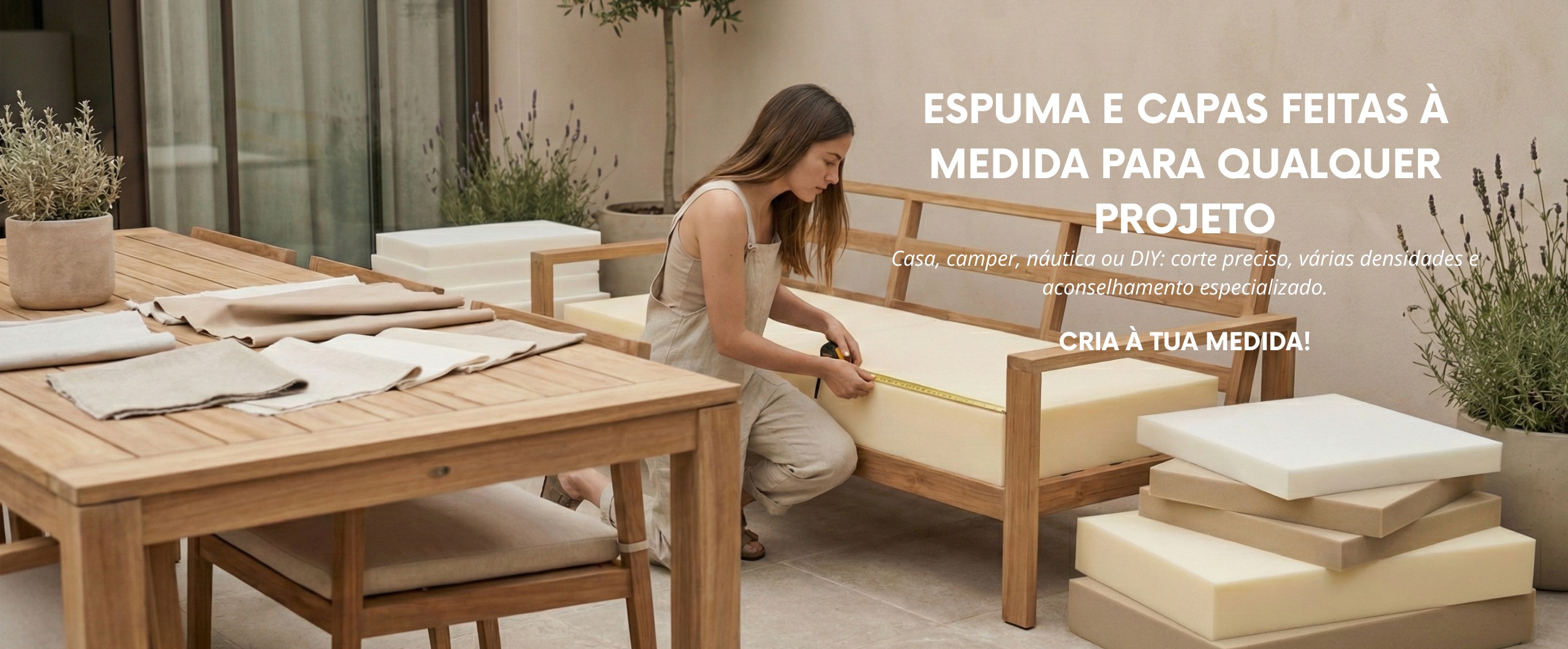 Personalize todos os nossos produtos de acordo com suas necessidades. Seja para renovar seus móveis de exterior, estofar seus sofás ou equipar seu veículo, nossas capas e espumas se adaptam a qualquer projeto.